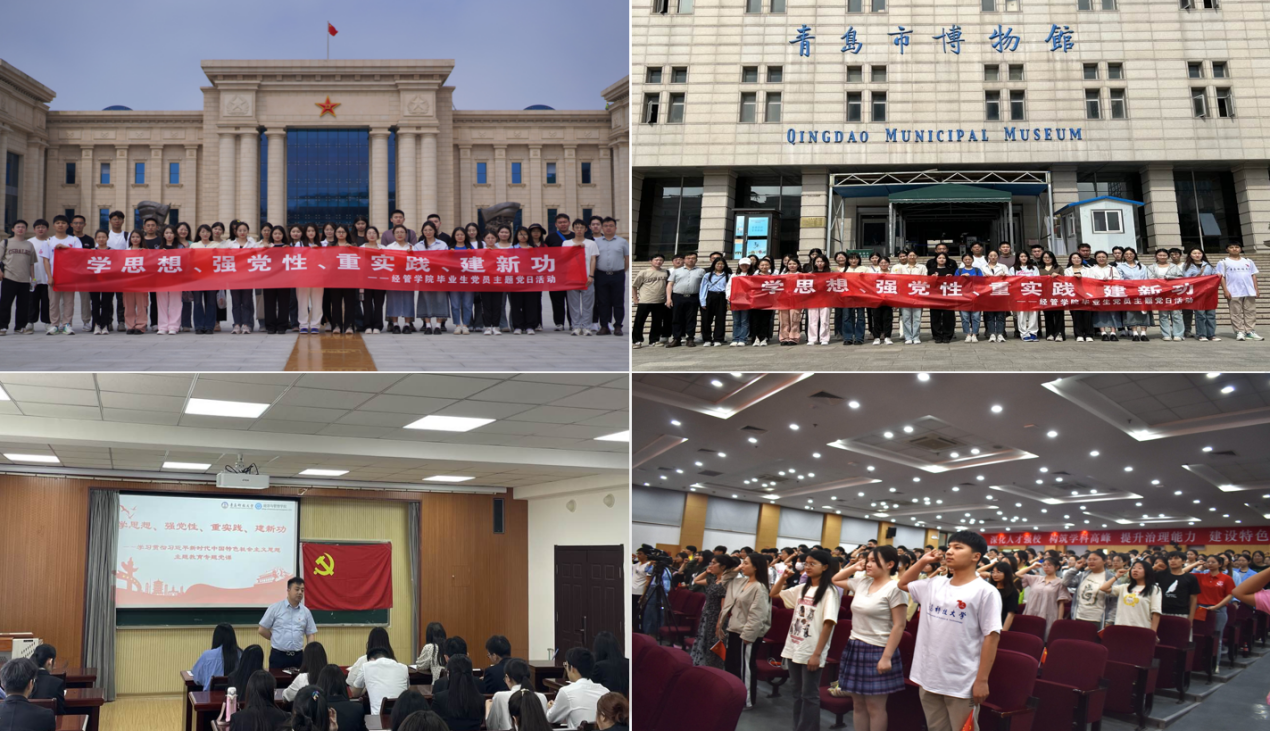 结合学习贯彻习近平新时代中国特色社会主义思想主题教育工作,深入贯彻“学思想、强党性、重实践、建新功”的总要求,举办内容丰富、形式多样的理想信念教育,教育引导毕业生坚定前进信心,努力成为有理想、敢担当、能吃苦、肯奋斗的新时代青年。6月14日、15日,学院组织开展“学思想、强党性、重实践、建新功”毕业生党员最后一课主题教育活动,主题教育包括“四个一”系列活动,即致毕业生党员的一封信、一次专题党课、一次重温入党誓词、一次毕业合影。全体毕业生党员前往中国人民解放军海军博物馆、青岛市博物馆开展主题党日活动,追寻红色踪迹,深刻感受历史赋予我辈青年的责任与使命,毕业生辅导员寄语全体党员,共同上好“最后一课”,进一步增强毕业生党员的责任意识和身份意识,重忆入党初心、勇担时代大任。6月15日,学院积极承办《奔赴年轻的“战场”——2023届毕业生思政课》,用音乐讲述党史,用歌声礼赞党恩,以“音乐+思政”的形式,将逐梦青春、追求卓越、砥砺前行等思政元素融入其中,引导学生树家国情怀,许下“与时代共鸣、与祖国同行”的铮铮誓言。