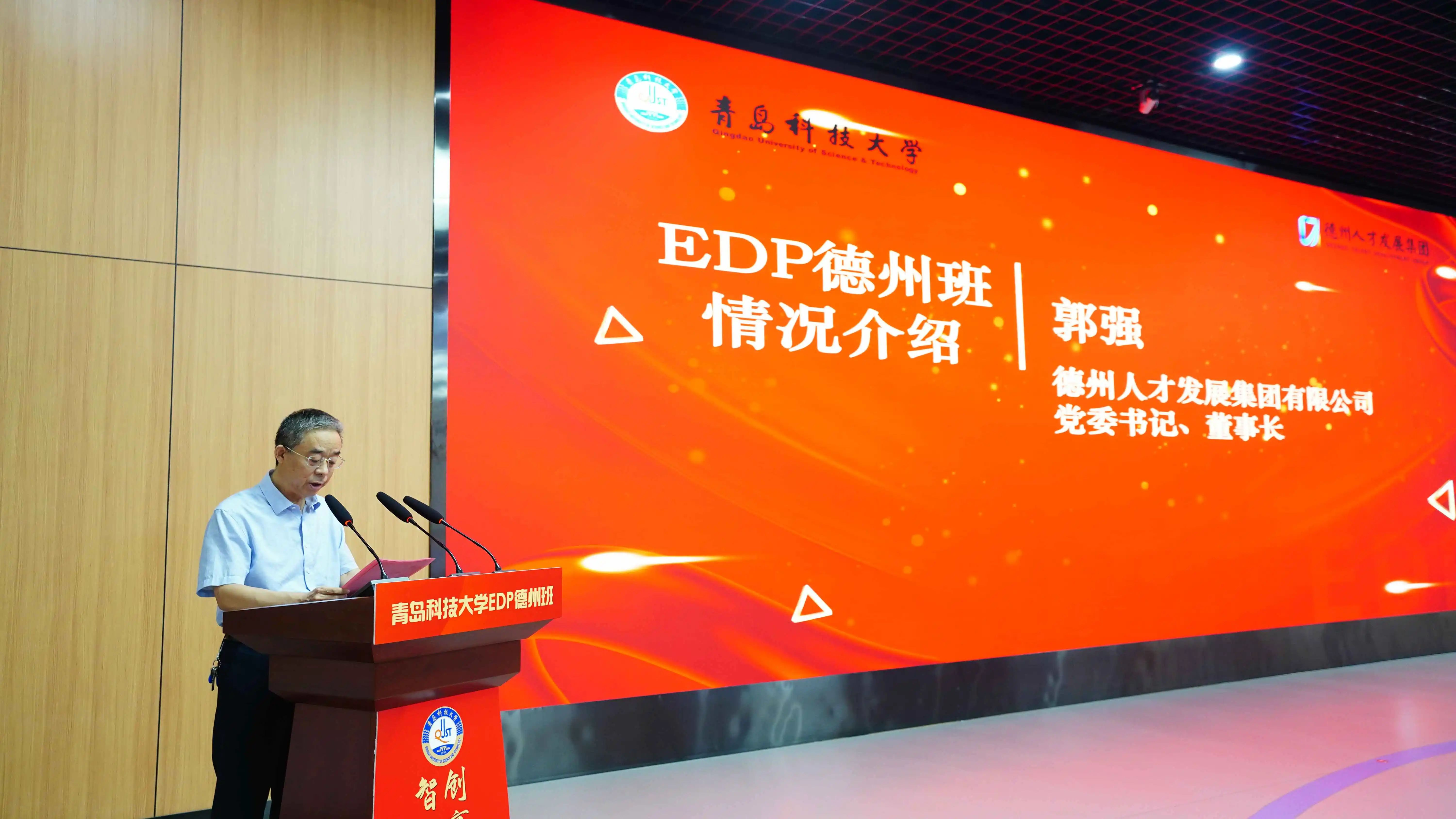 (德州人才发展集团党委书记、董事长郭强同志介绍青科大EDP德州班情况)