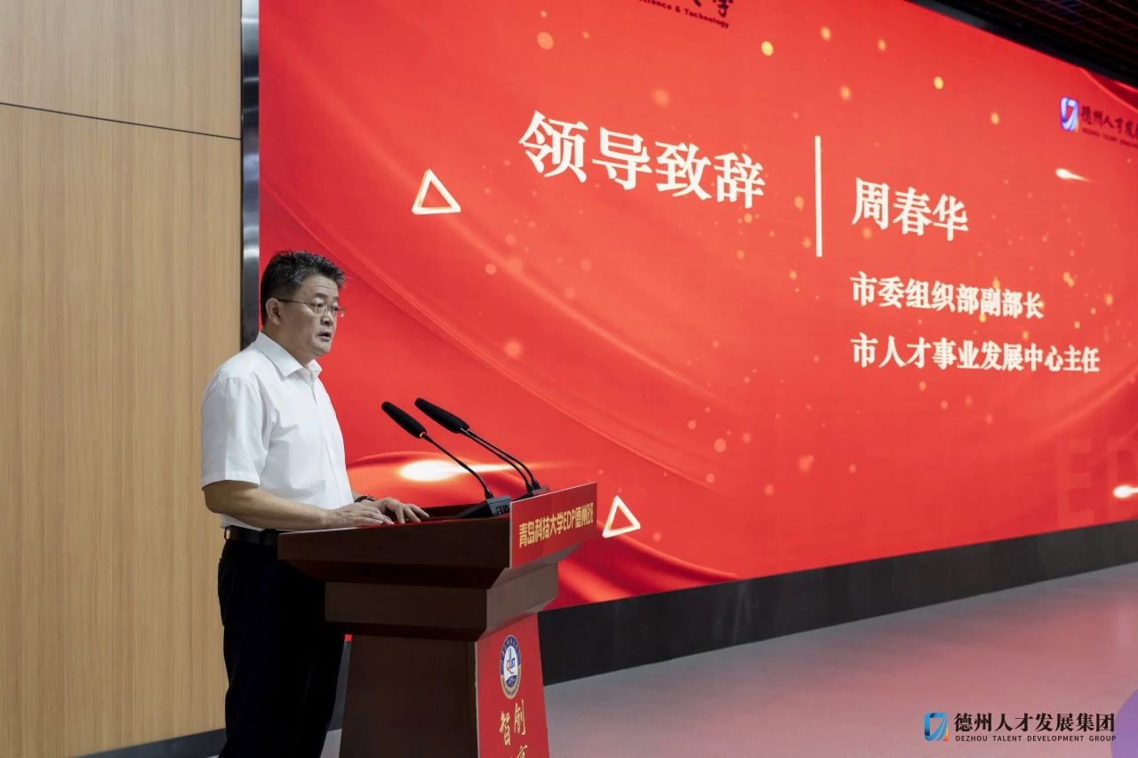 德州市委组织部副部长、市人才事业发展中心主任周春华,市工信局党组成员、副局长于吉江,市国资委党委委员、副主任王志超,市科技金融产业融合促进中心副主任牟德志以及市人才集团党委书记、董事长郭强和青科大成人直播平台