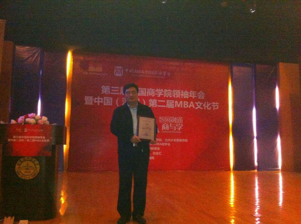 会上同时举行了隆重的颁奖仪式,以表彰推动中国商学院教育发展、在事业上取得巨大成就、为国家经济做出贡献的商学院杰出集体和个人。我校MBA联合会主席王德被授予2014中国商学院学子精英奖,为学校赢得了荣誉。