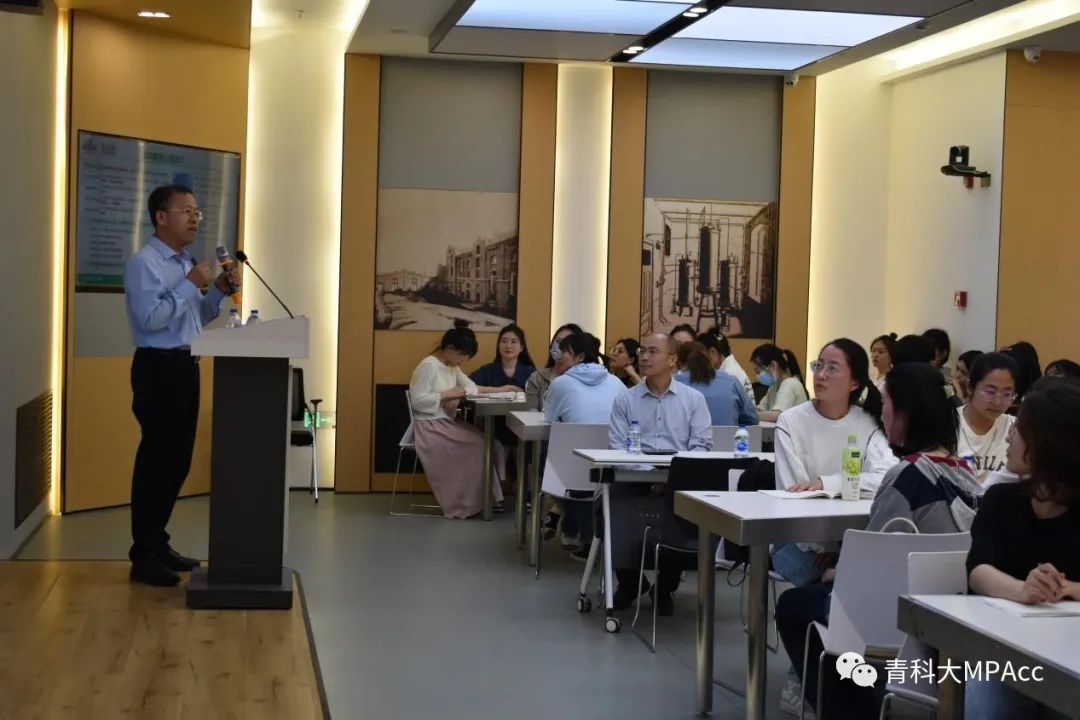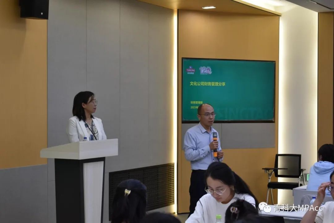 接着,青啤文化公司财务总监陈海虹老师为同学们就文化公司的财务管理做了专题报告,陈老师结合自己的工作,介绍了文化公司的现状及未来规划,财务管理工作目前存在的挑战及对标分析,并结合财务管理部的定位与使命介绍了财务管理工作的规划。