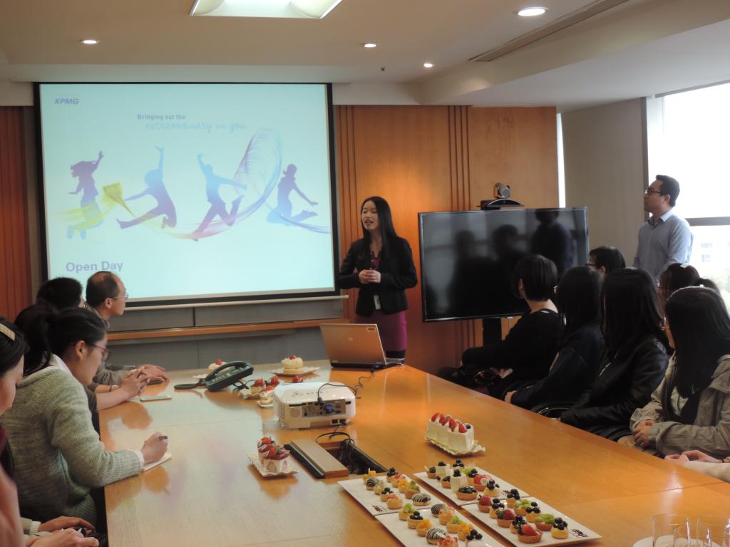 张经理向学生们介绍了毕马威事务所的建立、发展、业务、文化、管理等方面的基本概况,针对同学们感兴趣的招聘、薪资待遇、年轻会计师的培养机制等问题集中进行了说明。同学积极参与,热切提问,展现了我校MPAcc学生求知欲望高、不懂就要问的优良品格。最后,邵教授、于教授代表我校对毕马威事务所利用加班时间给我校学生讲解的有关问题表达诚挚的谢意。